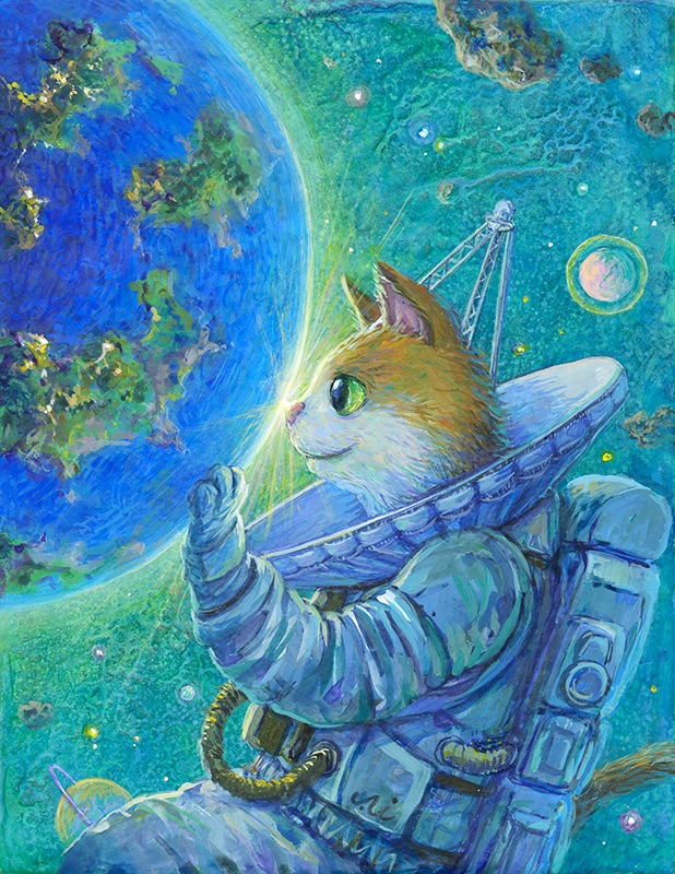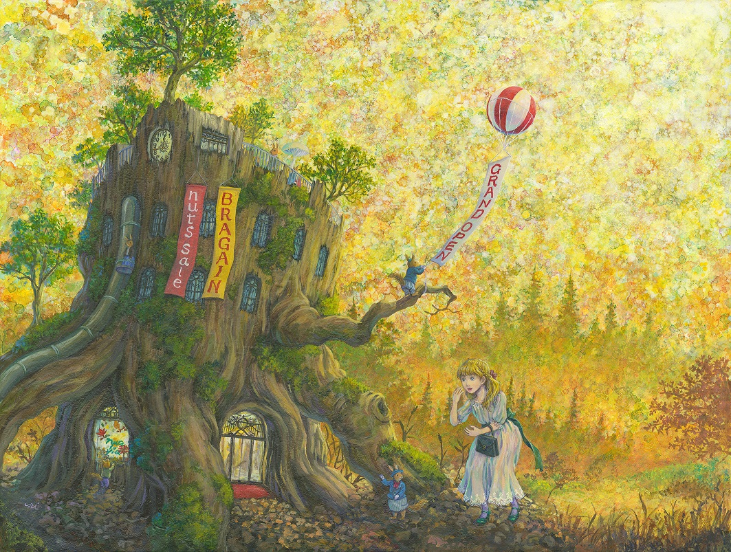 少女や様々な動物達の日常をリアルな背景の中に愛らしく、時にシュールに描く。絵画にリンクした立体作品も制作する。